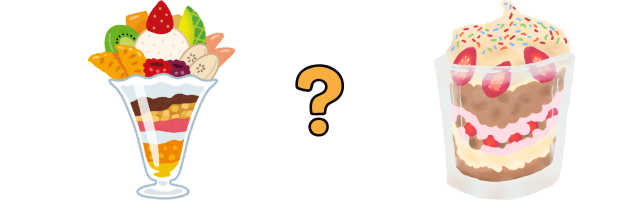| パフェ | 長細いグラスに盛り付けたデザート |
