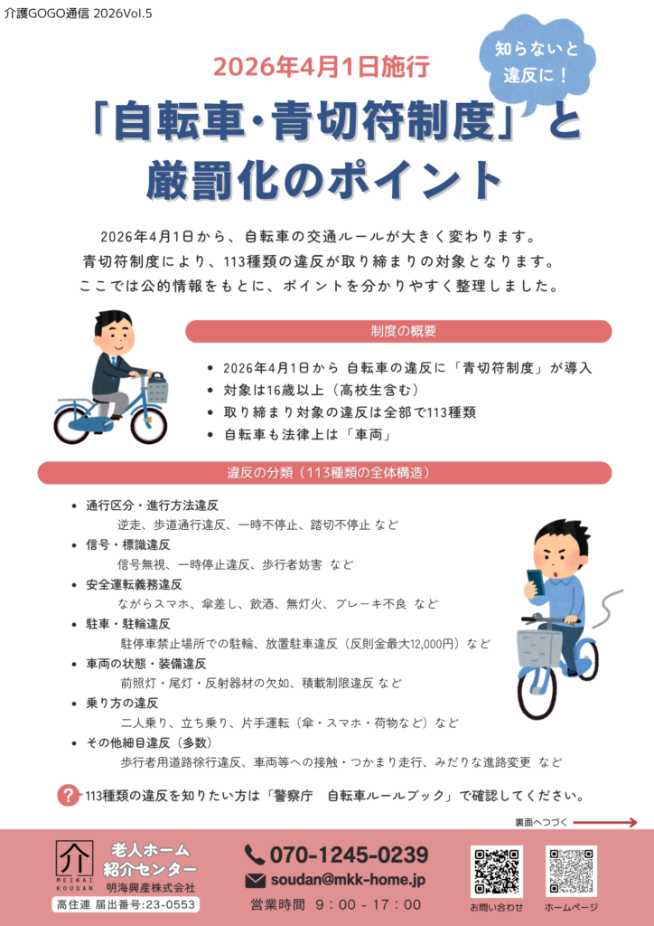 2026年4月1日施行の「自転車・青切符制度」により、自転車の交通違反に対する取り締まりが大きく変わります。